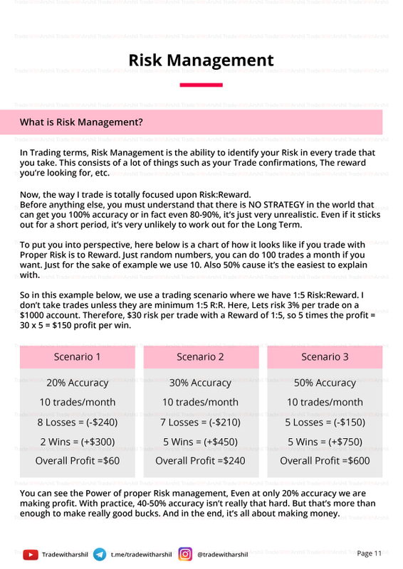 With this E-book, I also tend to offer 100% support and service through my socials. Preferably Telegram to help my people learn and do better in their trading career. Just hit me up at @arshilhaque